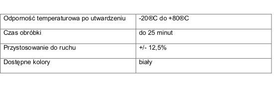 Po stwardzeniu nie kurczy się i nie rozszerza (nie zalecany do elastycznych uszczelnień)