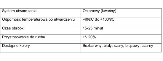 Polecany do elastycznego uszczelniania w szkleniu ram okiennych - wykonanych w szczególności z nowoczesnych materiałów (aluminium, tworzywa sztuczne, drewno).